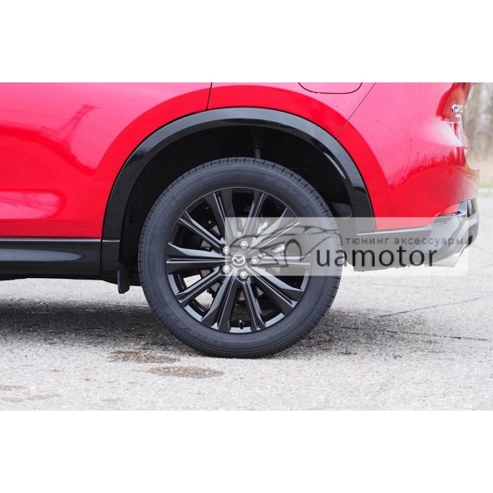 Бризковики Mazda CX-5 Usa Turbo 2022+ - комплект передніх і задніх бризковиків для Mazda CX-5 202+ USA TURBO З ЧОРНИМИ ГЛЯНЦЕВИМИ АРКАМИ!