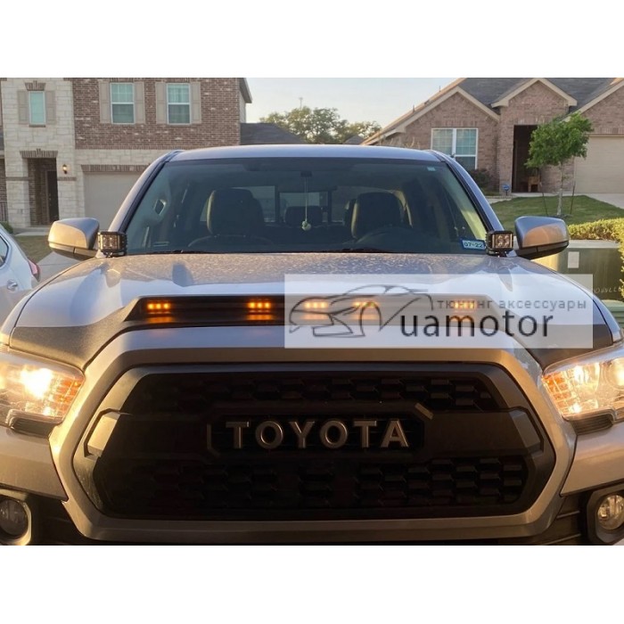 Дефлектор капота AVS Led Toyota Tacoma 2016+ - дефлектор капота AVS LIGHTSHIELD з вбудованими led габаритними вогнями жовтого кольору Toyota Tacoma 2016-2023
