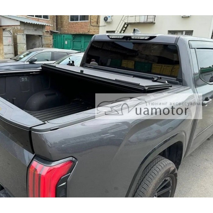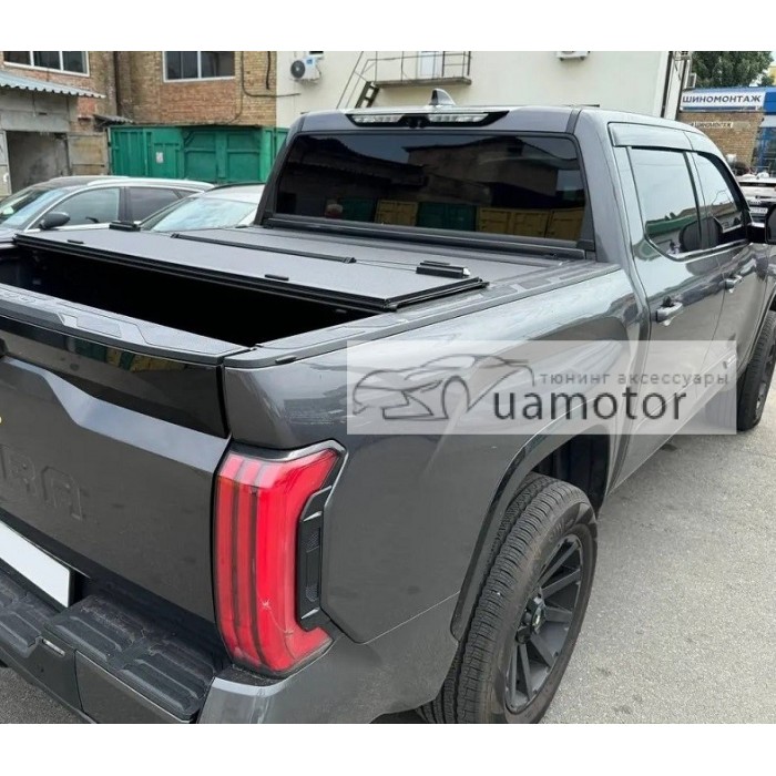 Кришка кузова Bakflip MX4 Toyota Tundra 2022+ - трисекційна кришка з алюмінієвих панелей з чорним матовим покриттям.