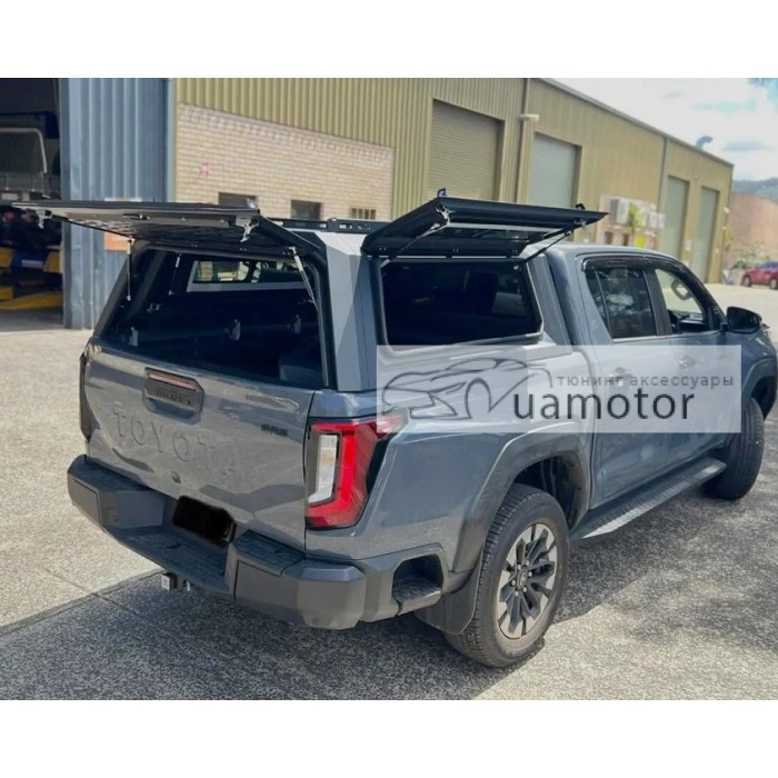 Кунг алюмінієвий Toyota Hilux 2026+ в кожній комплектації бічні вікна піднімаються вгору - великий плюс у зручності експлуатації.