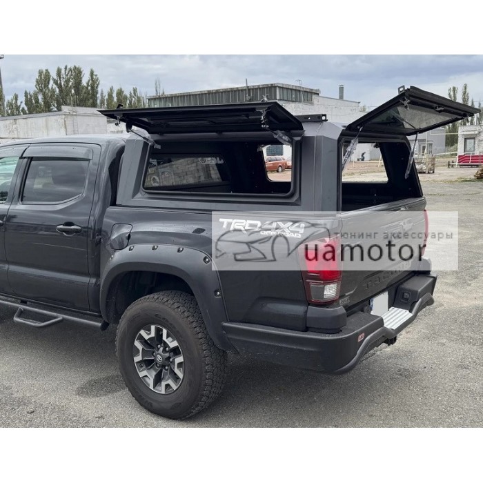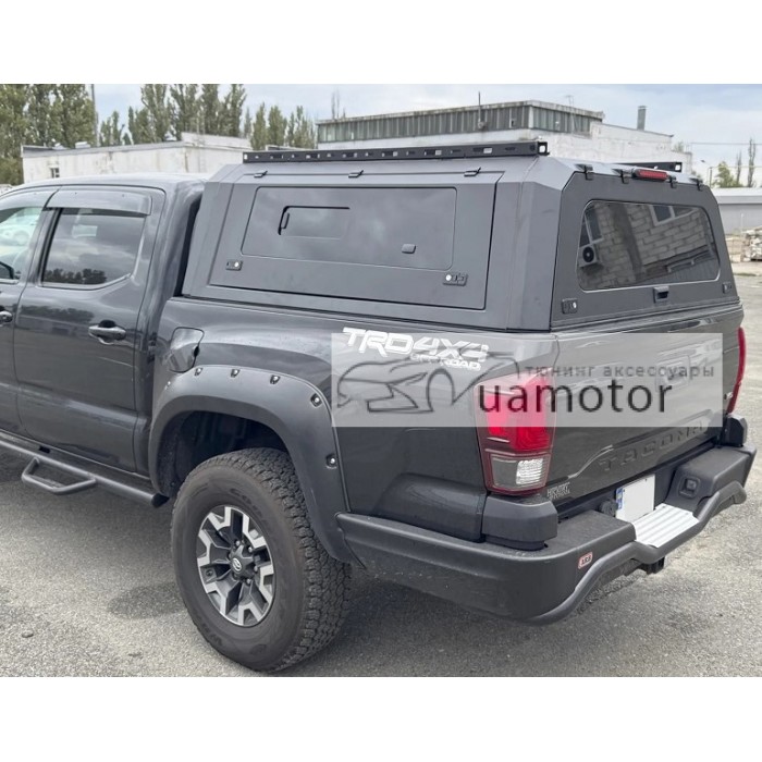 Кунг алюмінієвий Toyota Tacoma 2016+ в кожній комплектації бічні вікна піднімаються вгору - великий плюс у зручності експлуатації.