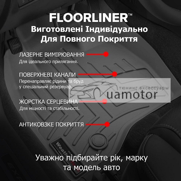 Килими WeatherTech - всепогодній захист! Розроблені, спроектований і виготовлений з використанням американського устаткування в США.