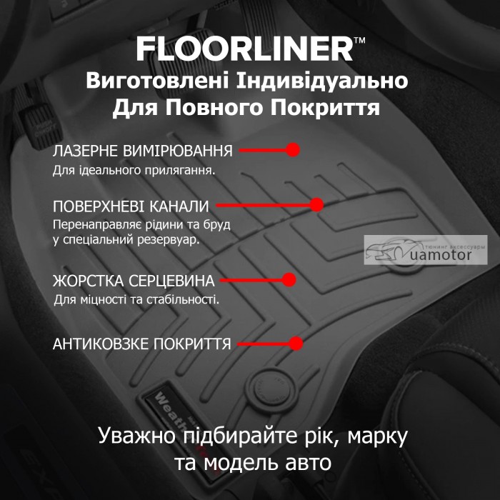 Килими WeatherTech - всепогодній захист! Розроблені, спроектований і виготовлений з використанням американського устаткування в США.