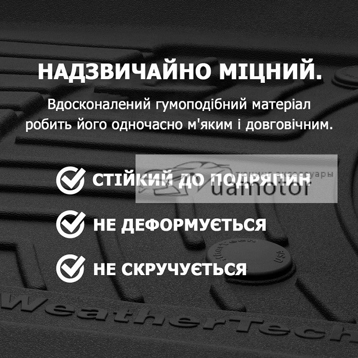 Розроблено, спроектовано і виготовлено компанією WeatherTech в Америці!