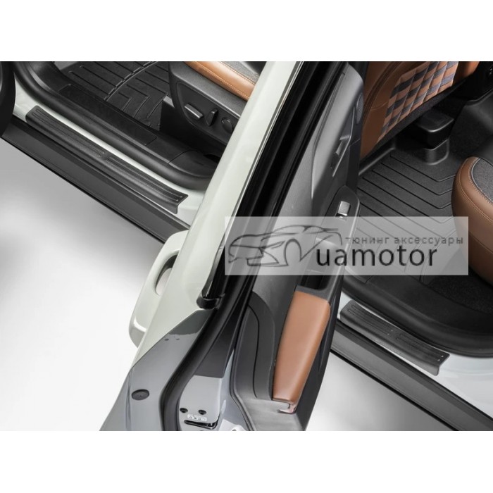 Накладки на пороги Weathertech Ford Bronco Sport виготовлені з удароміцного пластика індивідуально саме під це авто. Основною функцією є захист внутрішніх дверних порогів від подряпин і повсякденного зносу.