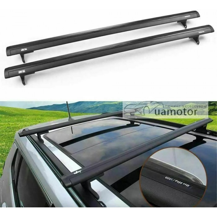 Перемички на рейлінги встановлюються на штатні місці в продольних рейлінгах Jeep Compass 2017+.