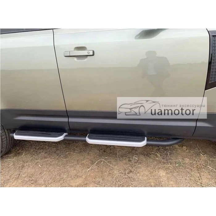 Бічні пороги OEM Land Rover Defender L663 виготовленні під оригінальний дизайн з широкими вставками під ногу.