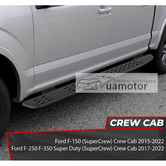 Пороги Raptor Style Ford F150 2015+ - бічні підніжки Raptor Style для Ford F150 Crew Cab 2015-2021 покращують зовнішній вигляд і практичність вашого пікапа.