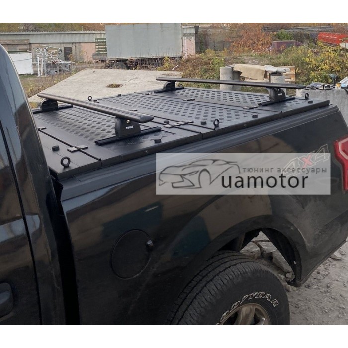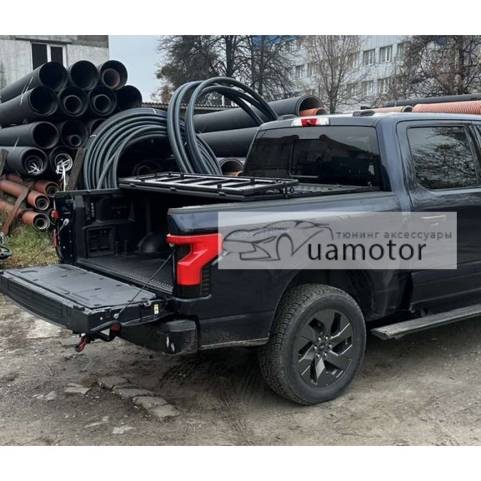 На складну кришку кузова Ford F-150 Lightning додатково можуть бути встановленні оригінальні рейлінги Thule -вартість комплекту 25000 грн (направляючі на кожну секцію під рейлінги, рейлінги Thule, опори з мобільними кітами для кріплення