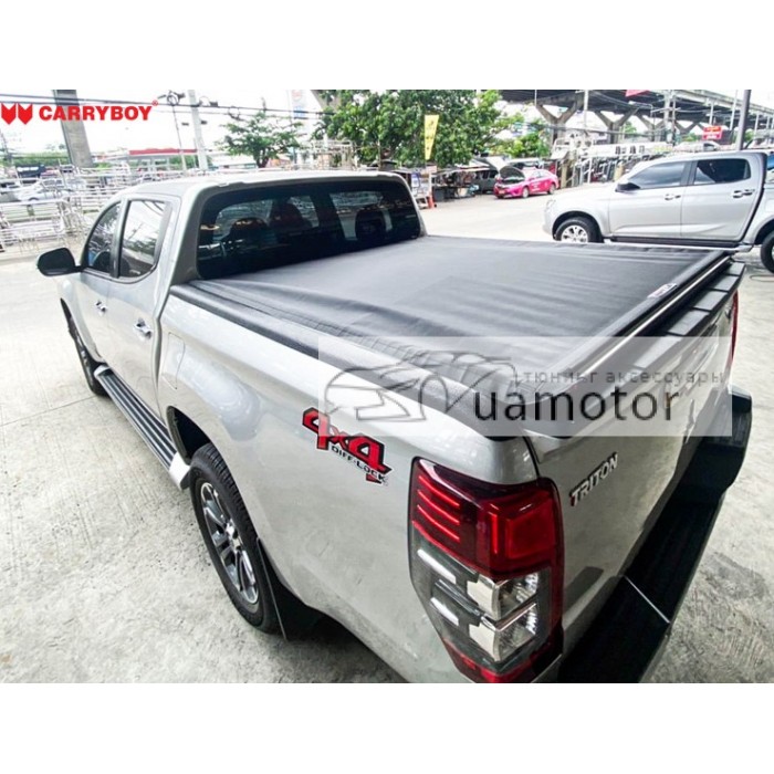 Тент на кузов Carryboy Mitsubishi L200 2020+ - тент Mitsubishi L200 2015-2024 Carryboy CB-743-CMSD складається і закріплюється на кабіні за лічені секунди за допомогою пряжок і ременів, забезпечуючи повний доступ для завантаження і розвантаження.